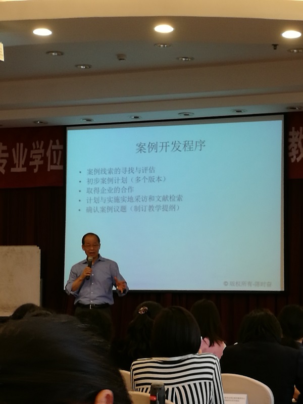 举办此次案例教学与写作培训会的目的在于进一步加强案例教学师资队伍建设,推进案例教学整体发展。本次培训会邀请的讲师为拥有18年全案例教学经验的加拿大西安大略大学毅伟商学院的陈时奋教授。陈教授主要讲授了教师的角色、案例教学法在专业学位教育的历史、案例教学示范与教学计划的撰写、案例教学与案例写作的本质、案例开发程序、案例写作技巧等内容。
