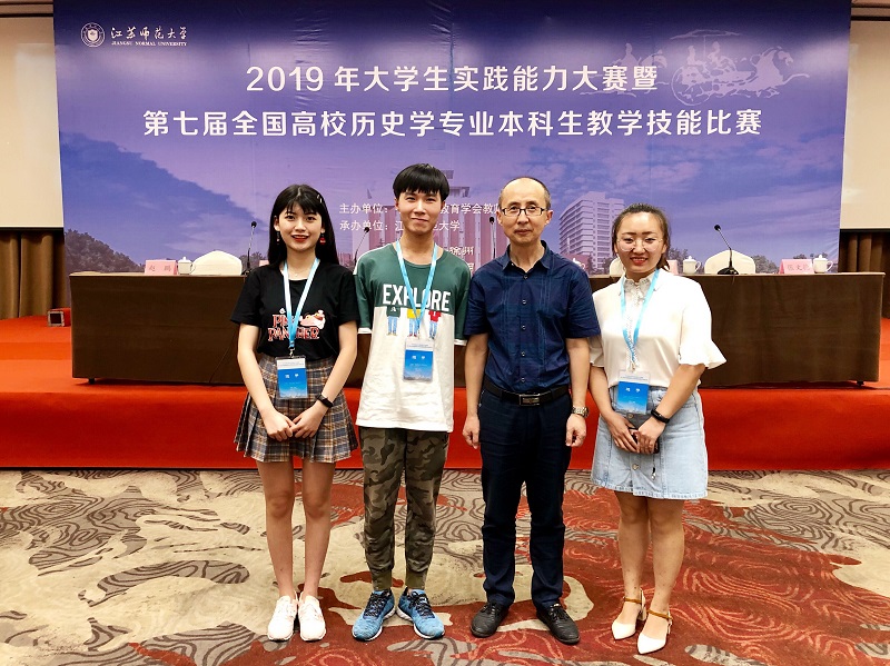2019年7月20日至24日,由中国高等教育学会教师教育分会全国历史教师教育专业委员会主办、江苏师范大学承办的“2019年大学生实践能力大赛暨第七届全国高校历史学专业本科生教学技能比赛”在江苏师范大学泉山校区举行,东北师范大学、华中师范大学、西南大学、湖南师范大学、华南师范大学等102所部属、省属及地方师范院校派选手参加。李鸣悦、张莎、林鑫毅三位同学代表我院参加了比赛并取得优异成绩。