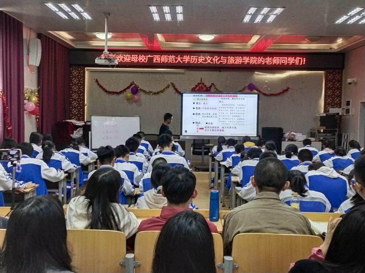 百年大计,教育为本;教育大计,教师为本。教师的培养,师范生的培育是完善国家教育体系中的关键一环,为加深师范生对教师工作的了解,加强师范生对新课程改革理念的理解,培养师范生实践与创新意识,为下一阶段本科生开展教育实习环节与走向教师岗位打好基础,环球360手机版登录2020级历史学专业本科生于2022年10月底至11月上旬分别分批次前往桂林市第一中学、桂林市第八中学、桂林市第十九中学与桂电中学四所教育教学实践基地进行教育见习,听评中学历史课程并与一线教师进行深度的沟通和交流,以提升各位同学的教学技能与班级管理能力,向“四有教师”方向迈进。