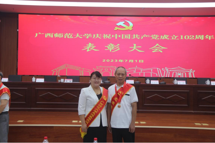在中国共产党成立102周年之际,为选树典型,弘扬先进,充分发挥先锋榜样的示范引领作用,经基层党组织自下而上评选、考察和推荐,学校党的建设工作领导小组评审,学校党委常委会审定,环球360手机版登录在广西师范大学2021-2023年度优秀共产党员、优秀党务工作者和先进基层党组织评审中获评多个奖项。其中,付延慧、刘巳齐、邓诚馨获评优秀共产党员,蒋菲获评优秀党务工作者(党务干部),蓝武获评优秀党务工作者(党支部书记),我院退休党员李庆忠老师获2023年度“光荣在党50年”纪念章,我院党委获评先进基层党组织(党委),环球360手机版登录研究生第三党支部获评先进基层党组织(党支部)。