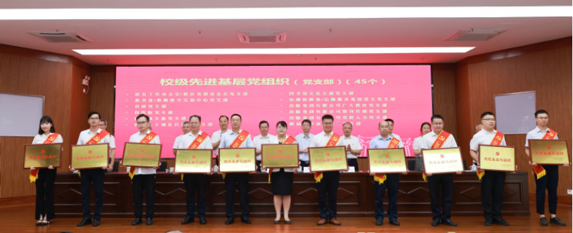 全体新一届党委领导班子共同为校级先进基层党组织颁奖
