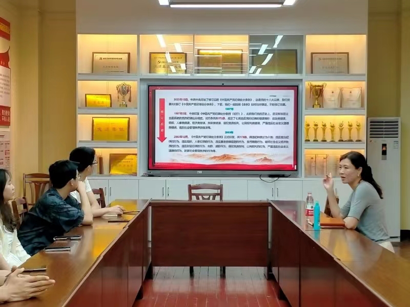 在专题学习会上,党支部书记带领支部成员通过研读文件原文、观看警示教育视频、深入开展讨论等形式对《中国共产党纪律处分条例》进行了系统地学习。