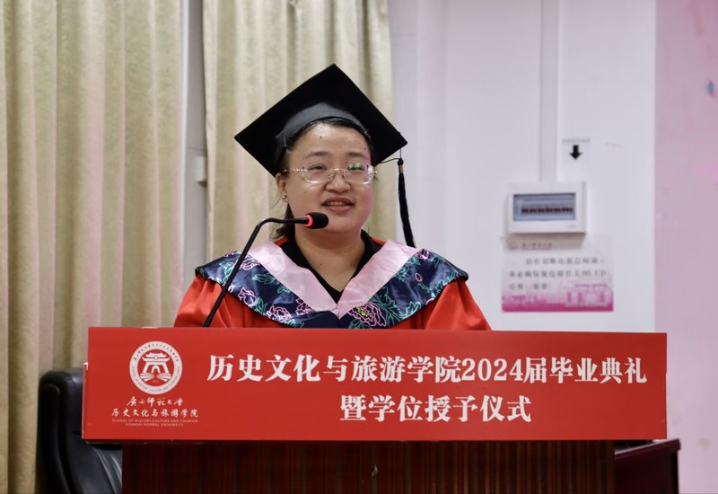 青春启航,骊歌未央,满腔炽热,奔赴山海。6月22日上午,环球360手机版登录在王城校区学术报告厅举办2024届毕业生毕业典礼暨学位授予仪式。本科、硕士毕业生及家长参加典礼。学院党委书记颜小华、院长徐毅、副院长蓝武、副院长陈国保、副院长吴晓山,学位委员会委员陈伍香、学位委员会委员邹长清,历史系主任江田祥、文化产业管理系主任付延慧、旅游管理与酒店管理系主任张燕,教师代表唐凌、蔡双全、韦勇强、沈继松、孙琳及辅导员贲国艳、李杰、常诗悦出席典礼。典礼由学院党委副书记黄琳主持。
